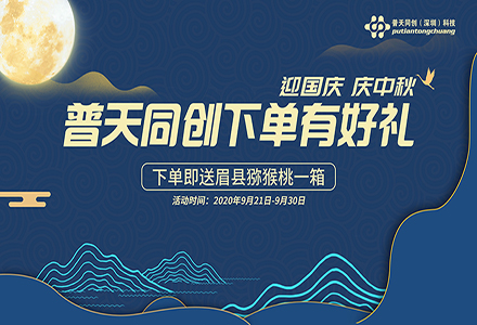 賀中秋迎國慶。2020年國慶·中秋雙節到來之際,普天同創向所有新老客戶提前送上最誠摯的佳節祝福,將開啟下單有禮活動。活動時間為:2020年9月21日—9月30日。