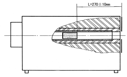 爐體中心為加熱管,加熱管內置一“靶”,組成圓錐—圓柱復合腔體。“靶”在加熱管中的位置會影響黑體腔的黑度系數,其位置由“靶”的端面至黑面板的距離L來保證。L=270±10mm。
