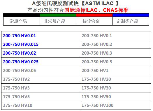 標準A級維氏(顯微)硬度塊