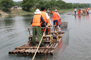 提起竹筏漂流,可能我們第一就會(huì)想到桂林陽朔——航行漓江百里畫廊的景象。
