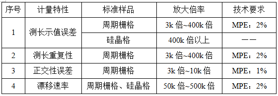 透射電鏡的計量特性參見表1: