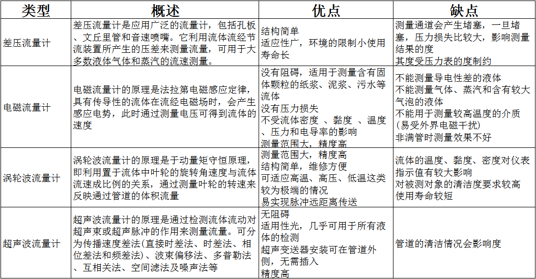 普天同創(chuàng)為大家整理四種常見流量計(jì)的優(yōu)缺點(diǎn),供參考: