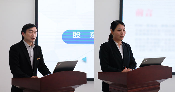 股東評選大會上,經過層層評選推薦,宣傳部的周赫和業務部的曹鳳勤,以強烈的主人翁意識,認真勤奮的工作態度,求真務實的工作作風,在公司發展歷程中做出了杰出貢獻,保障公司良好運作和快速發展。同時,他們都曾根據公司需要擔任公司多部門崗位,主動學習能力強也是他們的一大優點,合理運用時間來提升自己,更好的為公司服務。對此,公司將予以晉升股東為鼓勵,希望他們再接再厲。現場氛圍熱烈,也極大激勵了全體員工的奮斗精神,以他們為目標,紛紛表現出斗志昂揚的態度,也要努力成為公司股東的一份子。“以老板的心態打工,你早晚會成為公司的股東”這句話不是我們貼在會議室墻上的一句標簽,而是普天同創為全體員工搭建的實實在在的企業晉升通道。