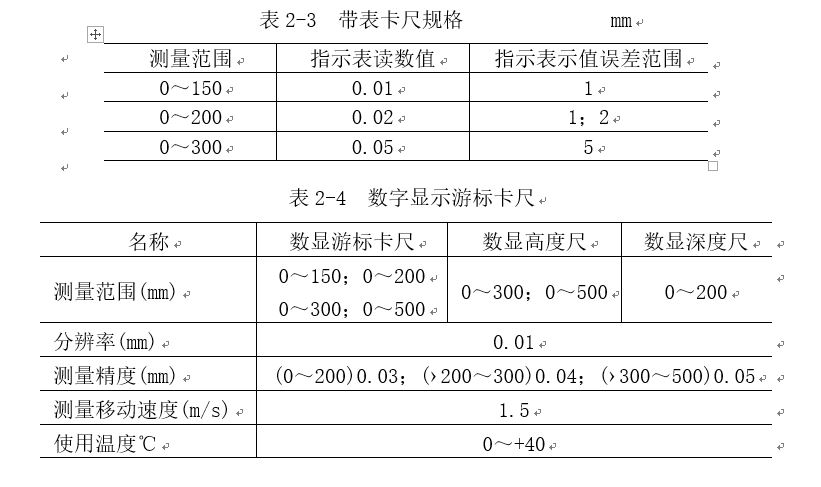 帶表卡尺的規格見表2-3。數字顯示游標卡尺的規格見表2-4。